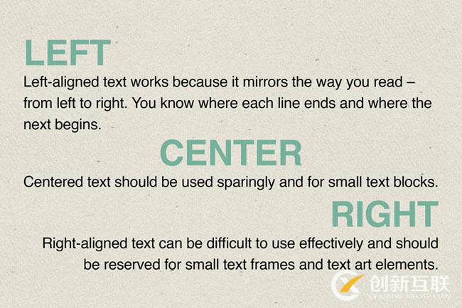 文本是否在中心,可以極大地影響可讀性。一般而言,網站上的文字趨向于左對齊。左對齊的作品,因為它反映了你的閱讀方式 - 從左至右。你知道每一行結束,在哪里開始。居中的文字,而流行,本身不適合可讀性。