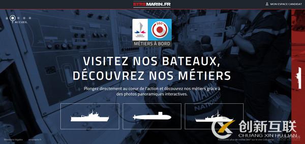 主頁(yè)迎接觀(guān)眾的是一個(gè)巨大的圖像滑塊。其中藍(lán)色版本是最符合海軍招募主題的色調(diào)。它們是形成天然的海軍氛圍的前景元素,非常自然的引導(dǎo)用戶(hù)注意力。