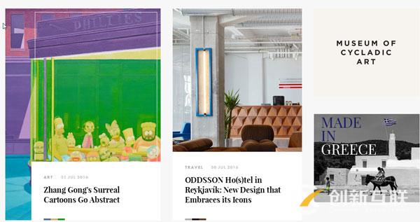 該網站的獨特設計很大程度上激發了訪客的靈感。同樣借助刪格來構建整體布局,整個網頁排版有著不對稱美感,元素并沒有在縱向上對齊,摒除了傳統網站一板一眼的排版,更加具有動感。
