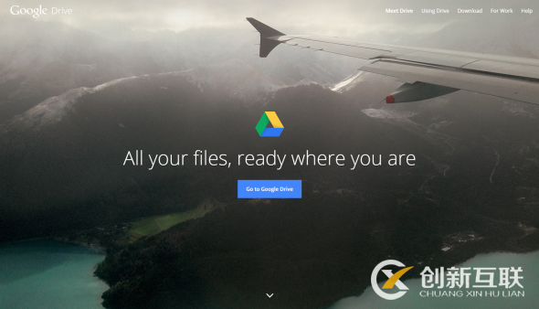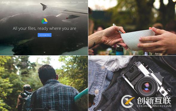 首先需要提煉產品特性關鍵詞,通過關鍵詞的形式尋找合適的圖片。 上圖是google云盤官網banner背景為一張在飛機向外看的圖片,不難發現用這種比擬手法來表現云盤的口號“隨時隨地使用”,在任何時候、任何地點都可以使用文件。換位思考,假如我們來設計google云盤官網,首先提煉出關鍵詞:隨時隨地、自動同步、超大空間等等,用最能突出特點和有代表性的關鍵詞來尋找合適的圖片。