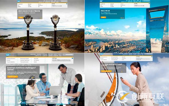 上圖為SAP公司官網的系列圖片,作為全球大的B2B企業為各行各業、不同規模的其他企業提供解決方案,正如它運用不同行業場景的圖片一樣:色彩豐富、但色調又不過于鮮艷,它們所有用到的圖片都有這些特點。