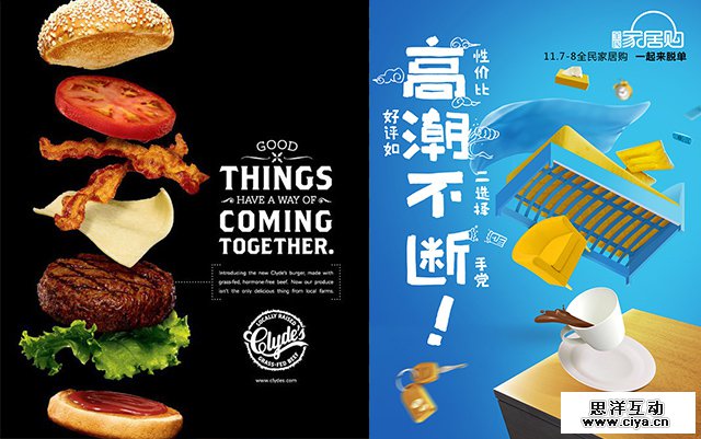 敢于創新的人永遠不會拘于某一種風格,就好比穿衣打扮,會混搭的人總能從人群里跳出來。設計里也有很多采用混搭風格設計出來的作品,但是大家也要注意,并不是隨便把一些不相關的東西搭在一起都會好看,其實怎么混搭本身就是一門學問,很難一兩句話說清楚,需要大家在借鑒與模仿中去嘗試。這里給大家介紹幾種常用的混搭組合:實景與手繪、線描混搭,3D與手繪混搭、實物與平面混搭,顏色混搭,現代與復古混搭,中國風與與西方元素混搭。