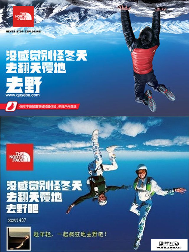3、制造動感運動著的東西總是比靜的東西更吸引人的注意,其實對于動物來說也是如此,例如蛇、青蛙等動物只能注意到會動的東西,靜止的東西會直接被忽視。對于視頻來說運動當然不是問題,但是平面設計是無法動起來的,不過真正的運動和動感是兩回事,雖然動不了,但我們仍然可以通過一些小技巧制造動感,例如:把物體擲在空中、把多個物體按一定的運動軌跡擺放、加入一個正在運動的人或者動物,又或者利用視覺矛盾制造動感,都可以讓平面的設計“動起來”。
