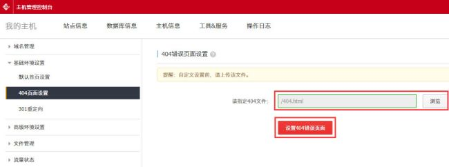我以萬網虛擬主機的404頁面設置為例,其他不同的IDC的虛擬主機設置大同小異。在截圖位置選擇上傳的404頁面模板,然后提交,這樣404頁面就設置好了,在網址后面輸入錯誤路徑例如“http://seo.cdkjz.cn/wangzhan/