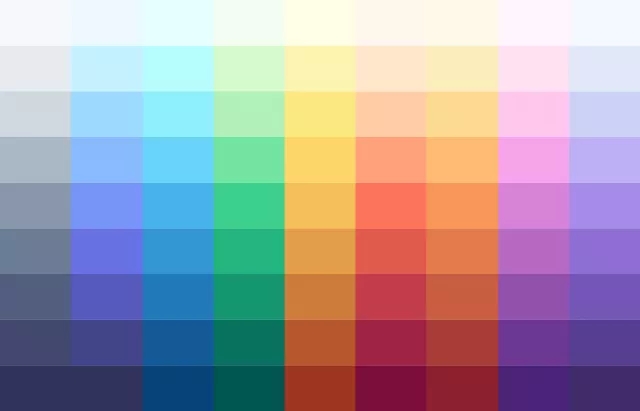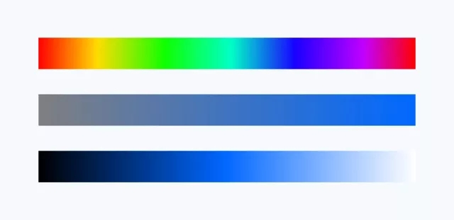 當我們在一個感知上均勻的顏色空間中選取亮度和飽和度相同的顏色樣本時,我們可以觀察到明顯的差異。這些顏色混合在一起,每一種顏色都和其他顏色一樣輕,一樣飽和。這就是工作中的感知一致性。