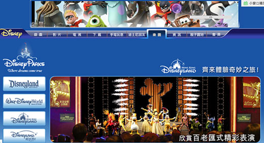 首先,設計風格。上面所說的cute無非就是一種風格的體現,在網站停當之前,就先明確自己的網站想要給用戶帶來什么樣的感覺,構造出給人的第一印象,讓人第一眼看到就覺得這個網站是你獨占的,這是展現獨特的第一步。從外表,顏色,文字等方面圍繞著一個主題進行,設計出個性,體現得不同凡響。如:Disney的網站,主題就是要體現出cute的風格,以米老鼠為代表的卡通人物是網站的主要元素,將特色重點化,網站的風格就輕松打造出來了。