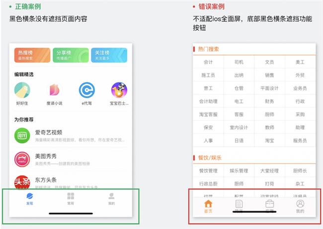 上圖:左圖為小程序iOS端正確適配案例,右圖為錯誤適配案例