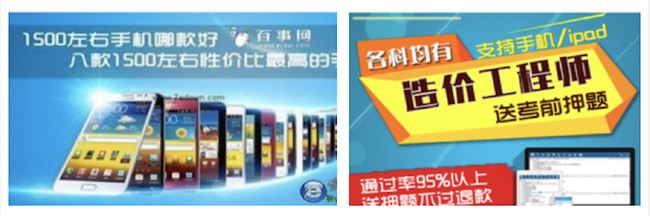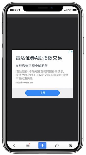 用戶使用搜索的目的是為了尋找自己需要的服務和信息,因此不希望看到過多的廣告。因此開發者在放置廣告時總體要求位置合適、廣告面積不可過大,不能遮擋用戶瀏覽主體信息。廣告與主體內容、功能按鈕等模塊之間要有明顯的距離間隔,避免用戶誤點擊。