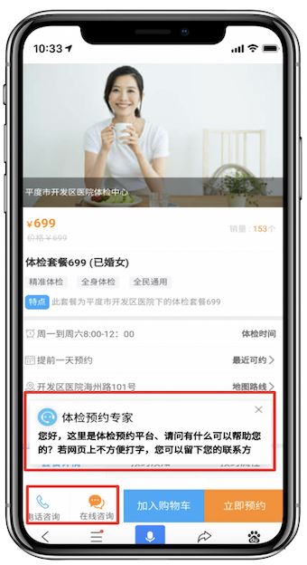 上圖:咨詢功能自動彈窗且與底部的咨詢按鈕重復,不符合要求