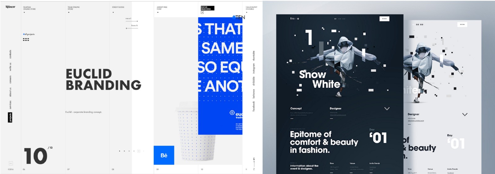 設計師從來都不會限制自己的想象力,而實驗性的布局設計很大程度上就是設計師的創造力的明證。對于實驗性布局的追求,在2017年的網頁設計領域達到了一個小高潮。