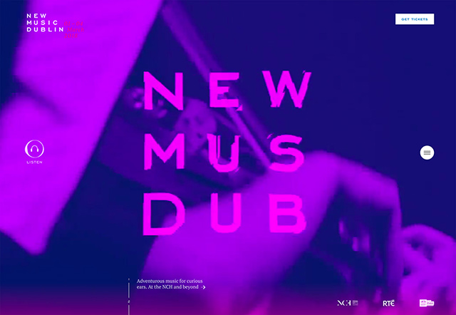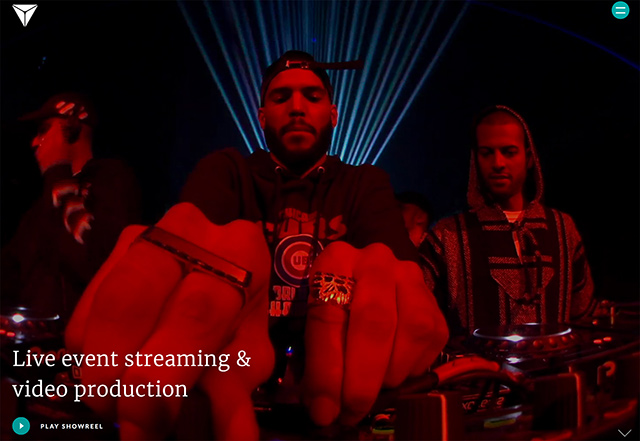 磁通廣播采用一種更有電影經驗的視頻方式。主頁有完整的屏幕視頻剪輯,短文本和只有幾個小的元素在屏幕上。用戶感覺他們是在看這個設計的視頻,而不是跳轉到網站的首頁。再一次,導航被塞進一個漢堡圖標中,彩色圓圈幫助它更醒目一點,右下角的一個小動畫箭頭鼓勵用戶在看完視頻循環后滾動。