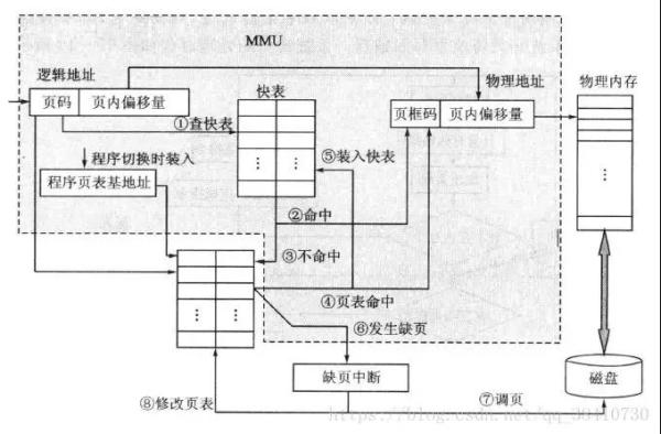 總之,使用虛擬存儲技術時,處理器必須配備一些硬件來承擔內存管理的一部分任務。承擔內存管理任務的硬件部分叫做存儲管理單元MMU。存儲管理單元MMU的工作過程如下圖所示: