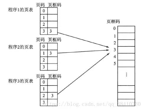 在多程序系統中,常常有多個程序需要共享同一段代碼或數據的情況。在分頁管理的存儲器中,這個事情很好辦:讓多個程序共享同一個頁面即可。