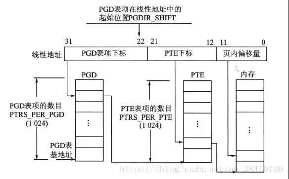 - #define?PGDIR_SHIFT??22 //PGD在線性地址中的起始地址為bit22?