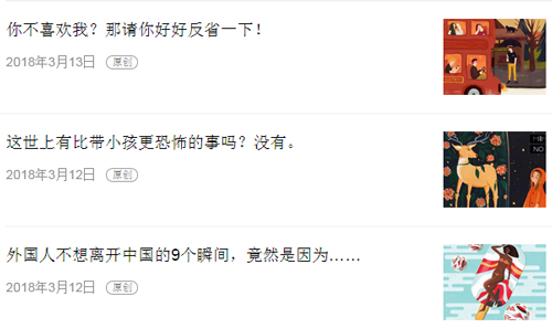 在這個浮躁的年代,漫畫風格的配圖其實為許多人所喜愛,給人感覺有些清新,還有點點痞,算是滿足大家對于個性的追求欲望,說上去好像還挺高大上,其實說白了就是很順現在年輕群體的眼。(下面截圖是咪蒙公眾號的配圖)