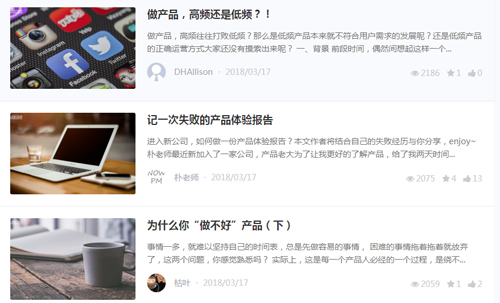 這個其實跟我們前面說的圖服務與選題類似,下面是人人都是產品經理的截圖,風格貼近原本自己所做的產品的定位:互聯網相關,并且圍繞著這個定位去做配圖
