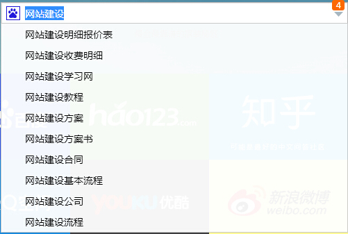 網站建設,在搜索的時候下拉框里面就會出現如下圖所示: