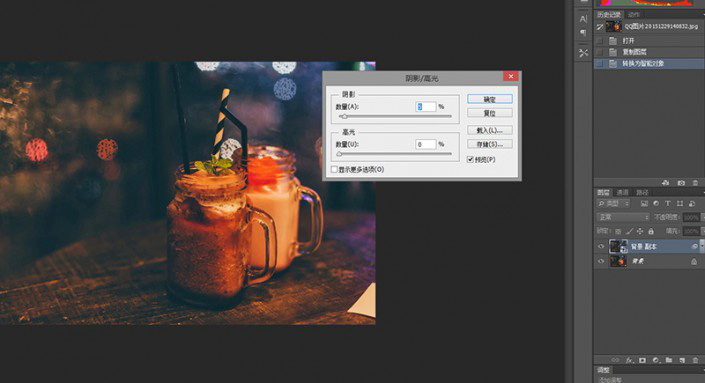 在Photshop里將圖片的暗部細節還原出來,最好的工具之一“陰影/高光”,想必大家都是知道的。不過,如果你直接在單個圖層上進行調整的話,可能會破壞細節。更好的方法是,復制背景圖層,對著此圖層點擊右鍵,選擇轉換為智能對象,然后點擊圖像>調整>高光>陰影/高光,調整數據去恢復細節。