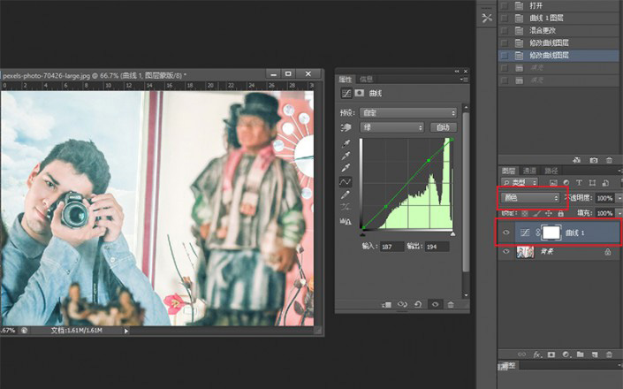 Photshop里有很多方法可以校正顏色,而你不妨試試用“曲線”去校正。首先,新建一個曲線調整層,將其圖層混合模式設置為“顏色”,這樣調整的話就不會影響你圖像的色調值。