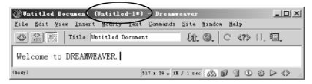 新建、保存和打開網頁1.新建網頁每次進入Dreweaver時,總是自動打開一個空白文檔,即可新建一個網頁。和在Word中的操作一樣,在文檔窗口內可以直接輸入文本,如圖所示