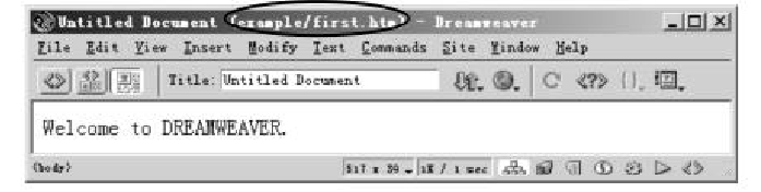對照圖可以發現,網頁沒有存盤時,文檔窗口標題欄的圓括號內顯示的文件。而一旦網頁存了盤,則文檔窗口標題欄的圓括號內就顯示了當前網頁的文件名(firsthtn)及其所在的文件夾(example)。