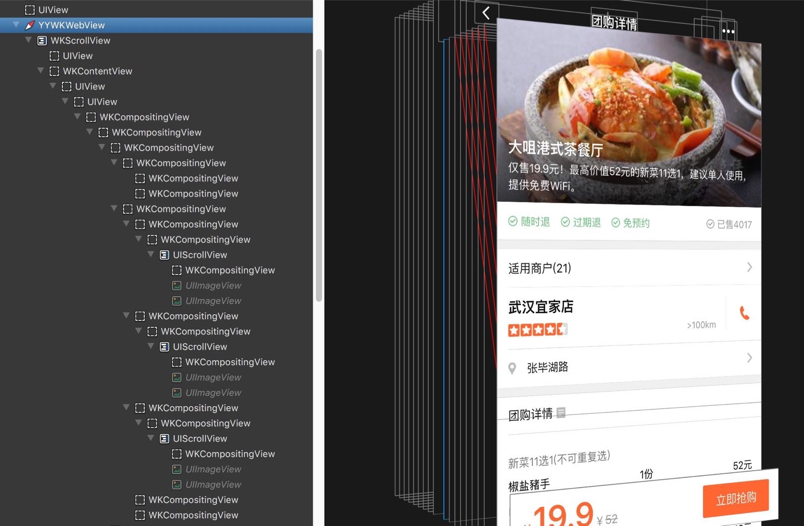 你們看到有一個 YYWKWebview 的東西了嗎?WKWebview是原生的一個瀏覽器控件,相當于只是用小程序打開了一個下載好的本地網頁。而且用了類似 weex/vue 那樣子的技術,所以頁面切換非常流程。(可以自行百度一下 阿里weex)