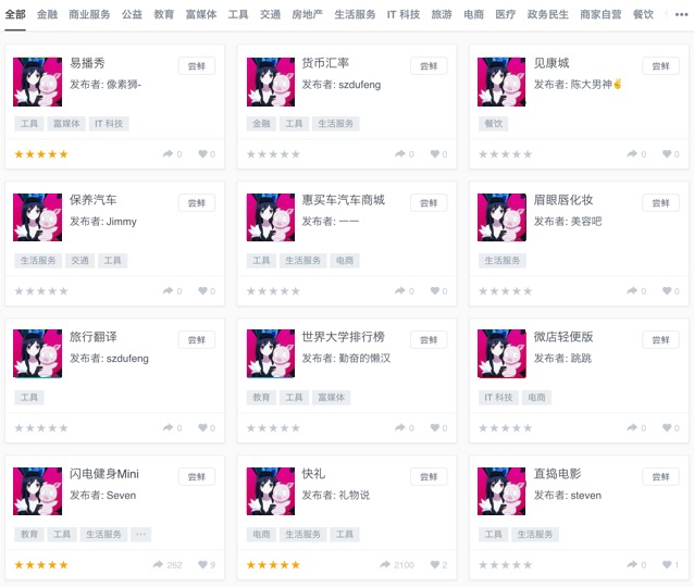 張小龍在公開課說了:”我們并不會存在一個小程序的商店,所以我們也并不會像外界所猜測的那樣,做一個APP的分發商店”。既然微信不做,巨大的入口價值,自然就會有別人去做這件事。讓別人記住那么多小程序的名字,每次想用的時候就去搜一下是很麻煩的,如果能把小程序匯總起來,想用的時候就去導航網站找,估計會方便很多。