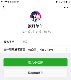 在廁所放一個二維碼,action = focus,掃描自動關注微信公眾號 jinkey-love。同樣的道理,帶參數的二維碼可用于線下商家、政府服務的小程序內不同功能區直接進入對應的服務而不需要使用多個小程序。比如去銀行掃描一個取號機上的二維碼取號,金銀柜臺掃碼了解各種理財產品。