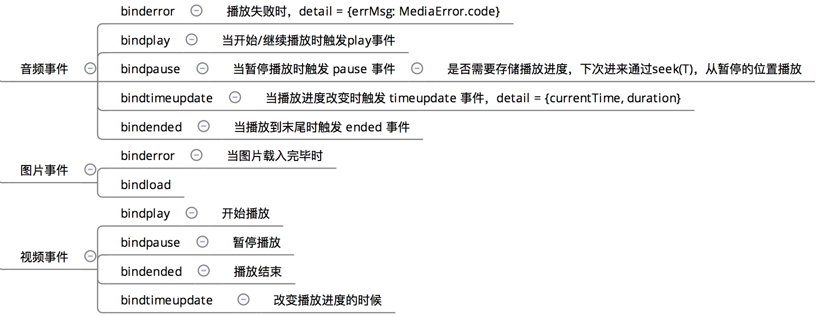 富媒體的事件主要有幾種:開始(加載)播放、暫停播放、結束播放、播放(加載)失敗、播放進度更新這幾種。
