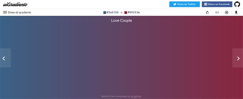 @崔嘎的兔子牙牙樂(lè) :漸變色用得好往往事半功倍,但如果配色難看,做成漸變只會(huì)起到雪上加霜的效果,所以本周的設(shè)計(jì)神器就安利一個(gè)在線分享漸變色的網(wǎng)站——uiGradients!全是已經(jīng)配好的漸變色,每個(gè)都很好看,搬來(lái)就用,節(jié)約了多少一個(gè)一個(gè)顏色試的時(shí)間!