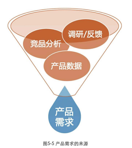 在實(shí)際項目中,采集需求的主要方式有用戶調(diào)研、競品分析、用戶反饋(上線后)、產(chǎn)品數(shù)據(jù)(上線后)等,如圖5-5所示。這些方法都是產(chǎn)品經(jīng)理和設(shè)計師需要密切關(guān)注的。