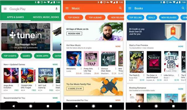 △ 從左到右分別是 Play Music,Google Plus 及 Play Newsstand