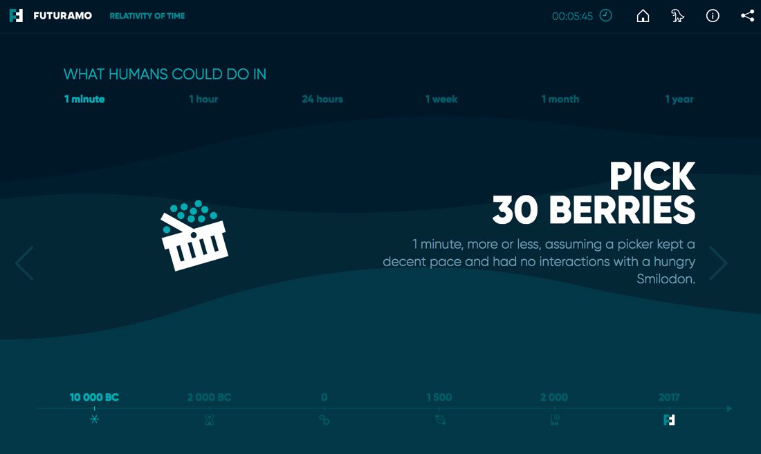 Futuramo 就是這樣來(lái)設(shè)計(jì) Relativity of Time 這個(gè)網(wǎng)站的,背景中無(wú)縫流動(dòng)的曲線波紋,和前景內(nèi)容毫無(wú)關(guān)聯(lián),但是足以營(yíng)造出平靜而自然的用戶體驗(yàn)。