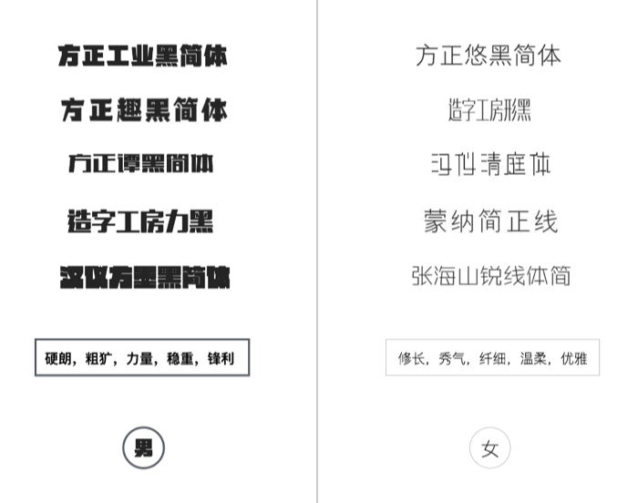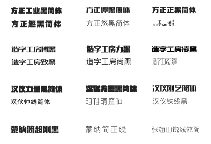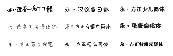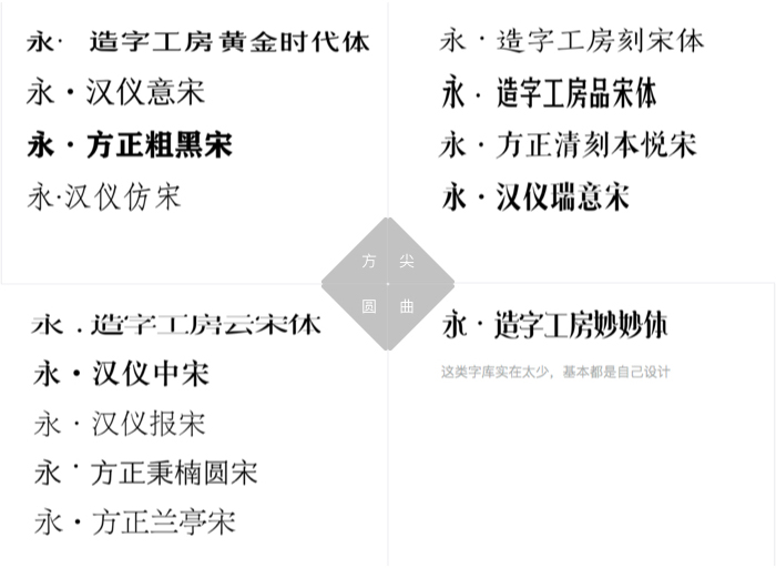 “曲線”本身是比較特別的,在“曲線”這一類里,字體給人的印象和粗細關系并不大;基本上給人的感覺就是以下幾種: