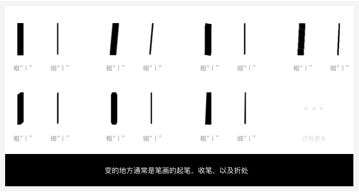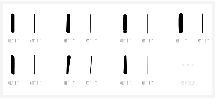 同樣,直接看改變完之后得到的很多新筆畫形狀(以筆畫“丨”為例):