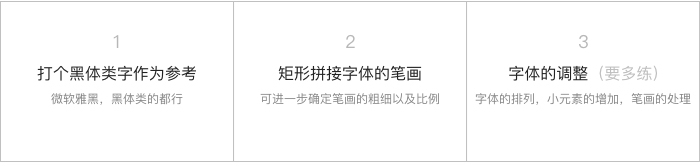 需要注意的是,這里告訴你們的只是字體設計的方法,幫助你少走彎路,不能一步登天,邊旁部首的式樣變化需要自己慢慢積累,細節調整應該調整哪些地方需要自己摸索。