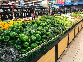 每種果蔬產品上對應一塊小板,上面標示品名、價格。