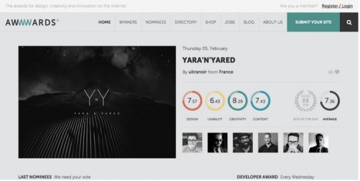 當與更明亮的顏色配合并呈現在一個平面的用戶界面,灰色背景的 awwwards 與它沉悶的風格相比,感覺更有現代感。