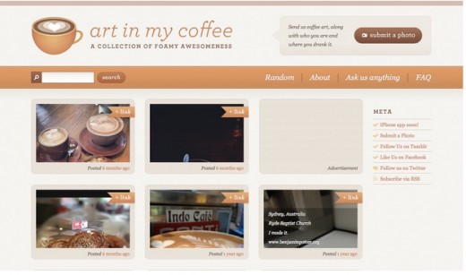 象牙色比白色更溫暖,在體現同樣的簡約和互補的同時,能給人一種舒服的感覺。象牙色應該被用來代替白色,以軟化它和更暗的顏色之間的對比度。對于 art in my coffee 網站,橙色/棕色被添加到奶油背景(看起來有點微灰色),以創造一種溫暖的感覺。