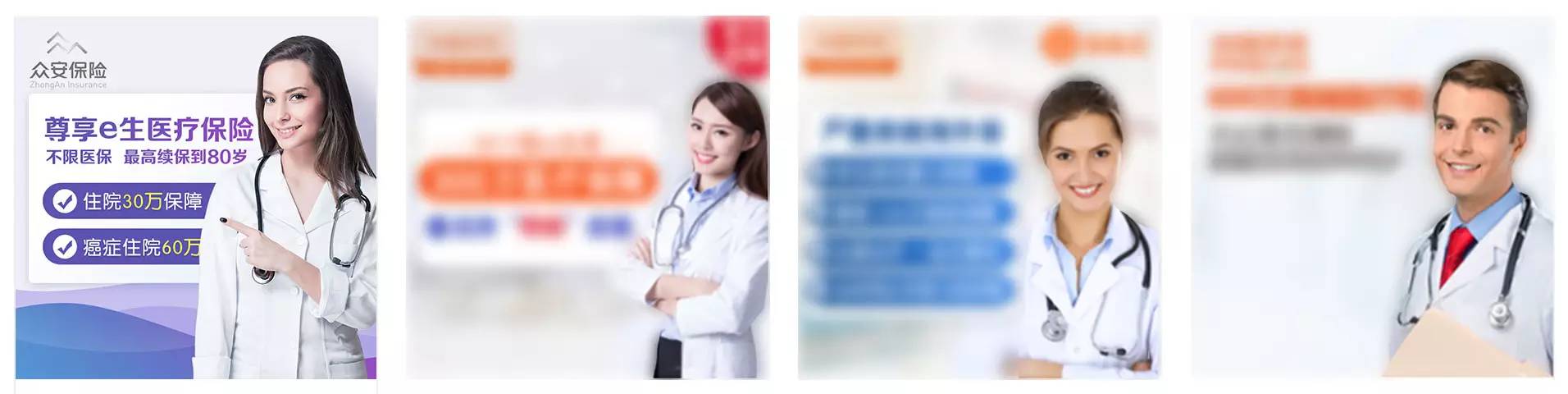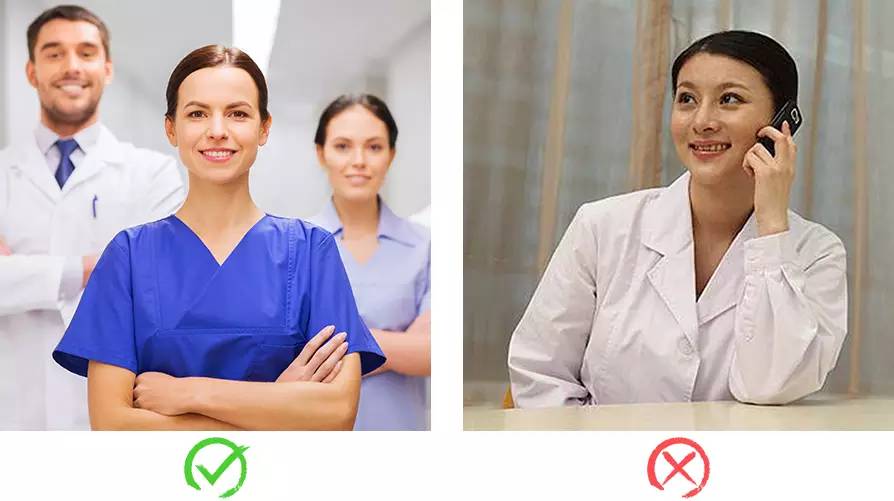 保險產品圖也是這樣,要理解受眾的心理,不僅要有外在美,還要有內在。用戶意識中的健康保險是專業的、嚴謹的,那么下圖中打電話的美女醫生和專業嚴謹的醫生團隊,哪個素材能夠給用戶美而且專業的感覺?不言而喻。