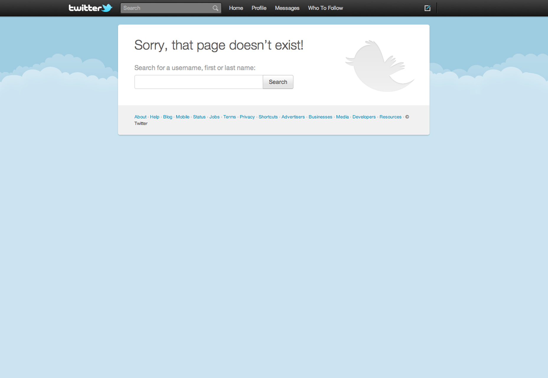 Twitter 在這件事情上就做的很棒,通過指導用戶搜索目標主題來告別404的尷尬。