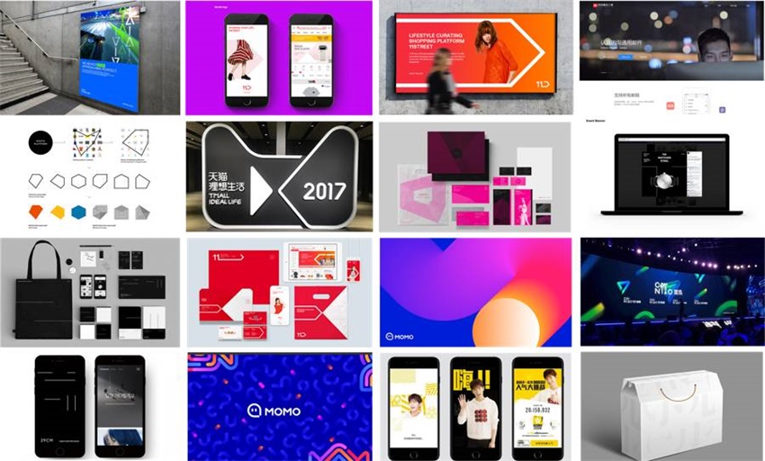 這個設計最終還是從眾多發散點集中在書法上進行了設計。用橫豎撇捺等等筆畫,以書法的一個方式來做了輔助圖形,應用到了品牌推廣及一些線下物料中。