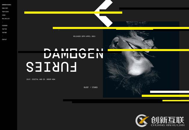 當(dāng)然,你還可以在Squarepusher 的網(wǎng)站看到相對(duì)不同尋常一些的縱向菜單設(shè)計(jì)。導(dǎo)航被設(shè)計(jì)成標(biāo)簽頁(yè),訪客可以通過(guò)滾動(dòng)切換,這是一種更為線性的導(dǎo)航欄設(shè)計(jì)。