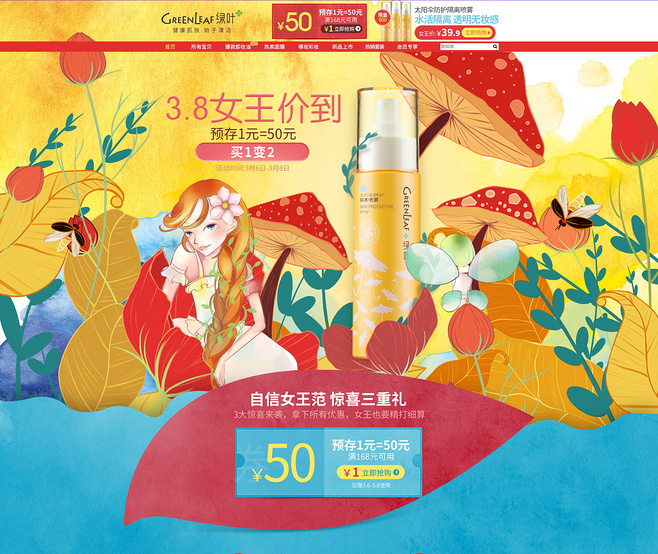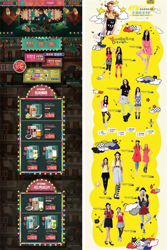 趣味親和力:網購大軍里年輕女性是占多數的,那這些女孩子們怎么可能拒絕得了萌萌噠或浪漫誘惑呢?所以你才會看到電商設計里時常會運用到手繪,因為手繪常常會給人一種或可愛或夢幻的感覺呀,你心情愉悅了掏錢的時候自然會更爽快嘛。