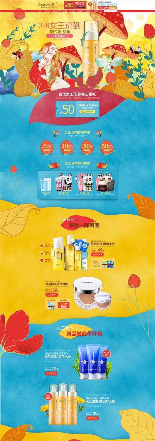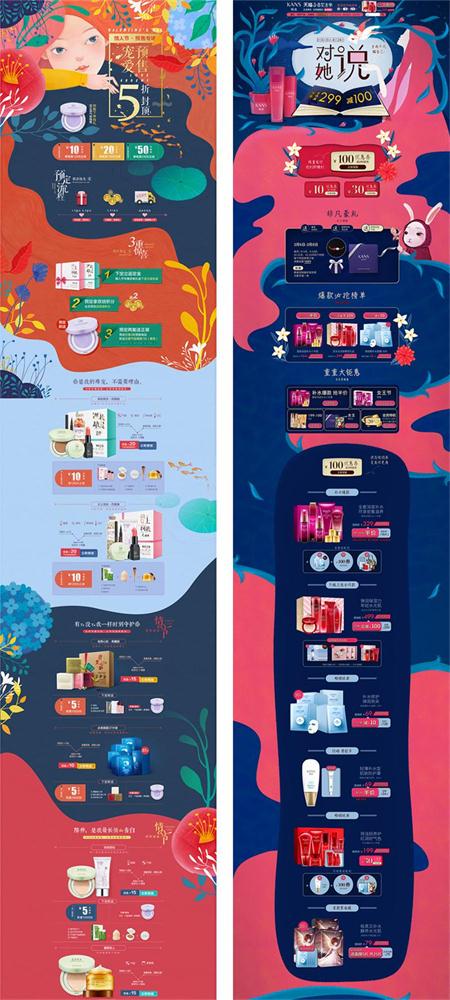 品類:母嬰個護/美妝護膚/服飾鞋包/吃喝玩樂等等主要為了籠絡女性及兒童用戶群體的品類,都比較喜歡用手繪類型的頁面設計,當然,現在越來越多的些小鮮肉也開始賣萌或追求小浪漫了。