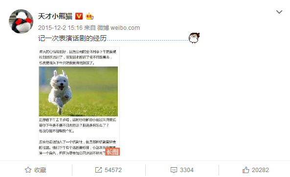 新媒體廣告的第一次高潮是@天才小熊貓 的微博長圖,它通過講一個很長的、有趣的、巧妙地故事,然后將品牌植入其中,因為品牌植入的很隱蔽,加上故事很好玩,@天才小熊貓 的每次廣告貼都能達到幾萬的轉發,上百萬的閱讀量。而因為這個看起來不錯的數據,很多廣告主競相投放。同時,也開啟了新媒體廣告的“軟廣時代”,大量的微博大號拋棄了以往直接硬廣的模式,改為@天才小熊貓 這種植入廣告模式。