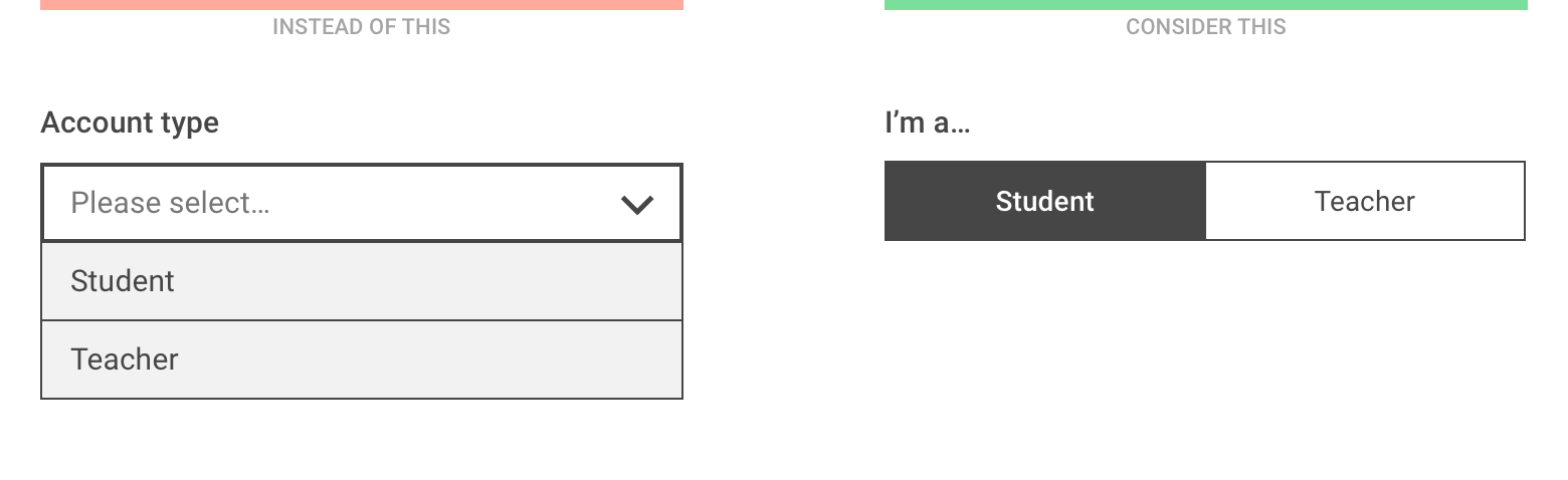 同時,根據Luke Wroblewski和一些人的說法,下拉菜單(或選擇)是最常被誤用的表格模式之一,“應該是最后的UI”。