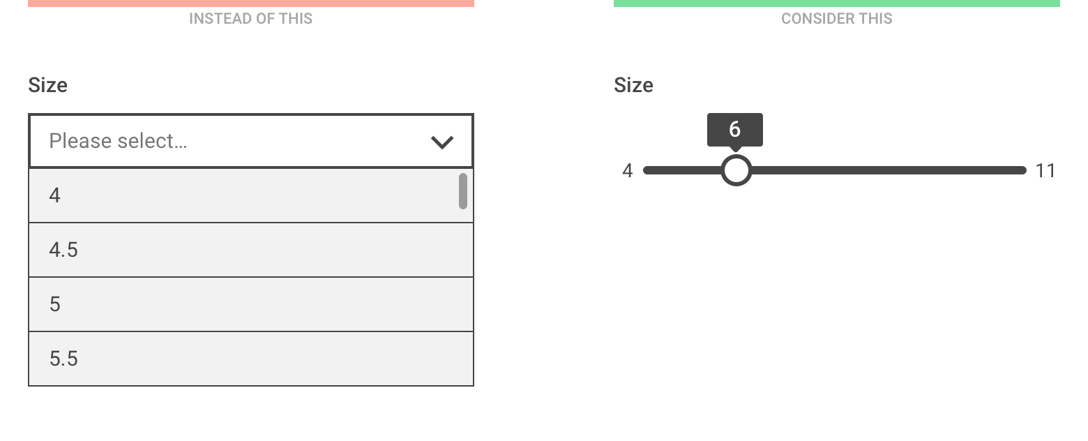 對于位于數字范圍內的的非預估值和預估值,考慮使用滑塊。