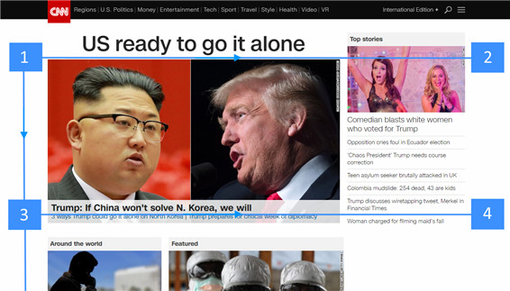 我們瀏覽內容的方式被訓練為從左上角開始水平瀏覽,回到左側向下掃視找到興趣點,繼續橫向瀏覽。