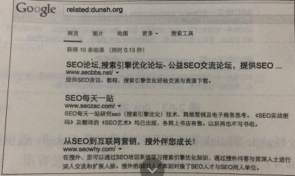 成都網站制作--創新互聯小編來講13):related,指令適用于google,返回的結果是與某網站有關聯的頁面。比如搜索related:dunsh.org